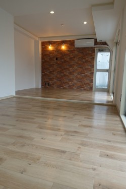 | 工事内容 | ①解体工事(キッチン・一部壁・天井・押入)②大工工事(天井・壁・洋間床組)③設備工事(キッチン入替)④電気工事(Panasonic ADVANCE コンセント・スイッチ取替・移設・増設、分電盤取替、LEDダウンライト設置、アンティークライティング・マリーンランプ取付、浴室換気扇取替、浴室照明取替、エアコン取替、TVモニターフォン取付)⑤内装工事(SANGETSUクロス床・天井、SANGETSU床CF貼)⑥その他工事(浴室水栓・洗濯機用水栓取替、建具塗装、給湯器取替等) |
