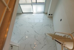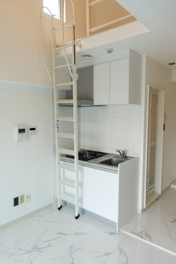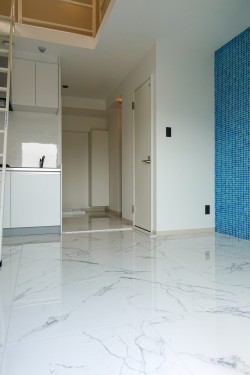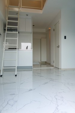 | 工事内容 | ①解体工事(スケルトン)②設備工事(Panasonic UWⅡ ユニットバス、Panasonic MXキッチン)、Panasonicらくらくロフトはしご・柵③ガス設備工事(給湯器取付含む)④給排水給湯設備工事⑤大工工事(軽天壁組、床組、ロフト延長床組、EIDAI扉・シューズBOX・窓枠等取付)⑥電気工事(Panasonic ADVANCEコンセント・スイッチ取付、分電盤取付、LEDダウンライト取付、エアコン取付)⑦内装工事(SANGETSUクロス壁・天井、SANGETSUトイレ床CF貼、床Marbleタイル貼、壁アクセントタイル貼) |